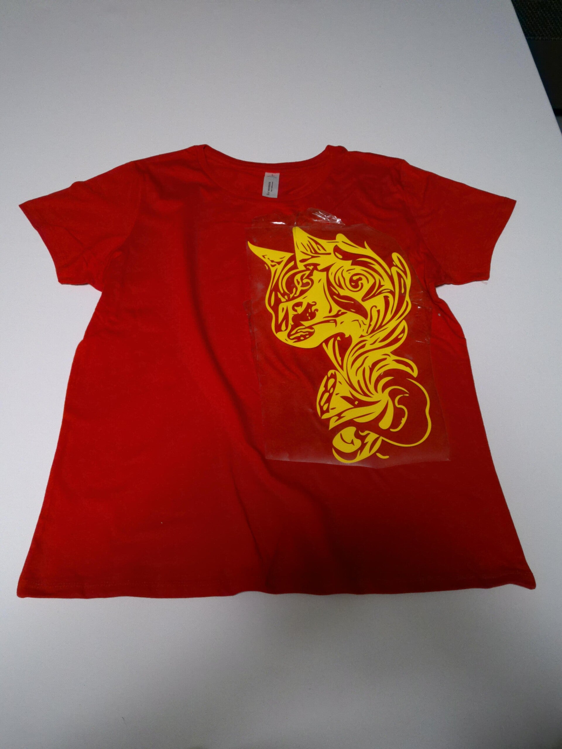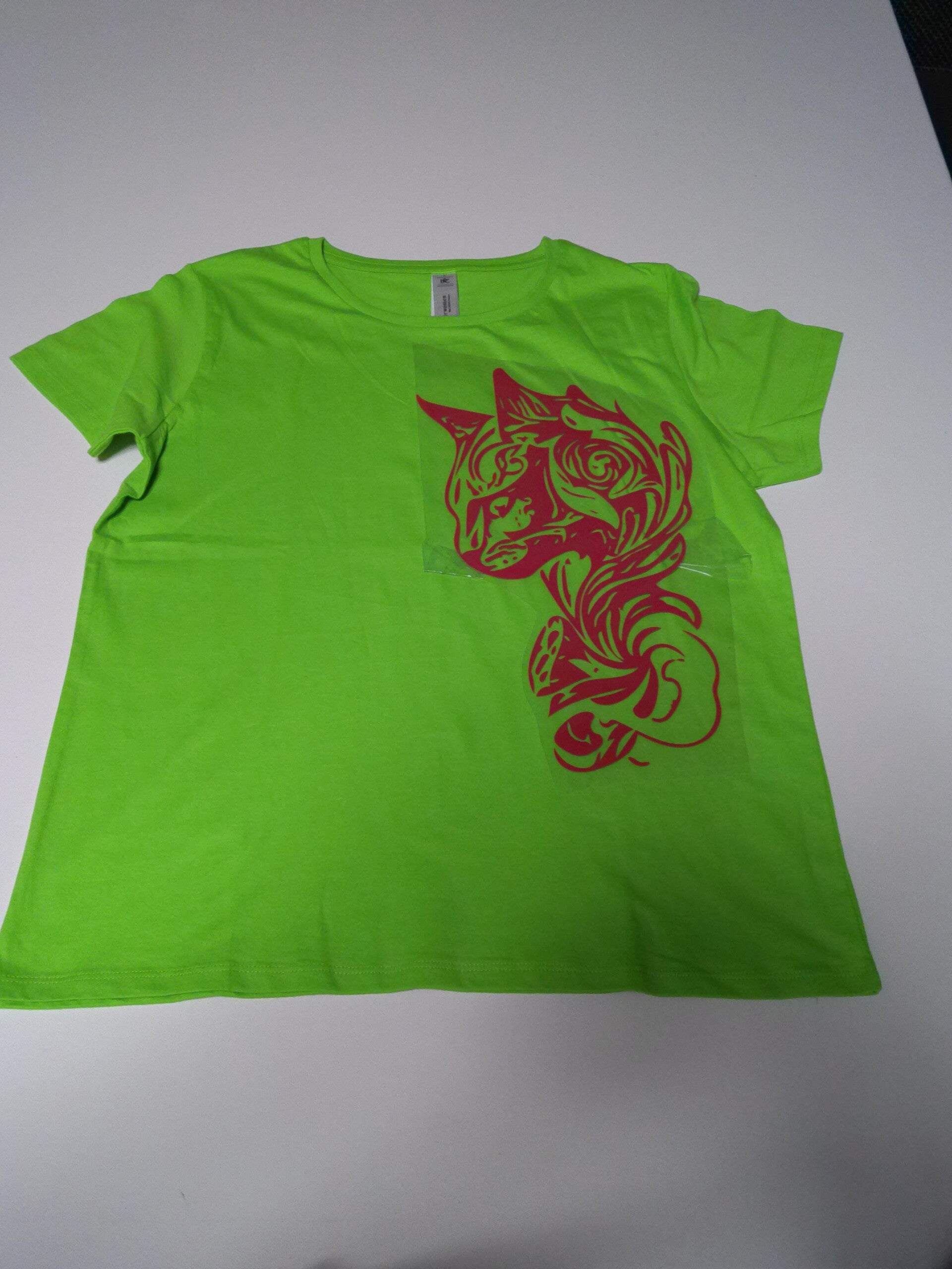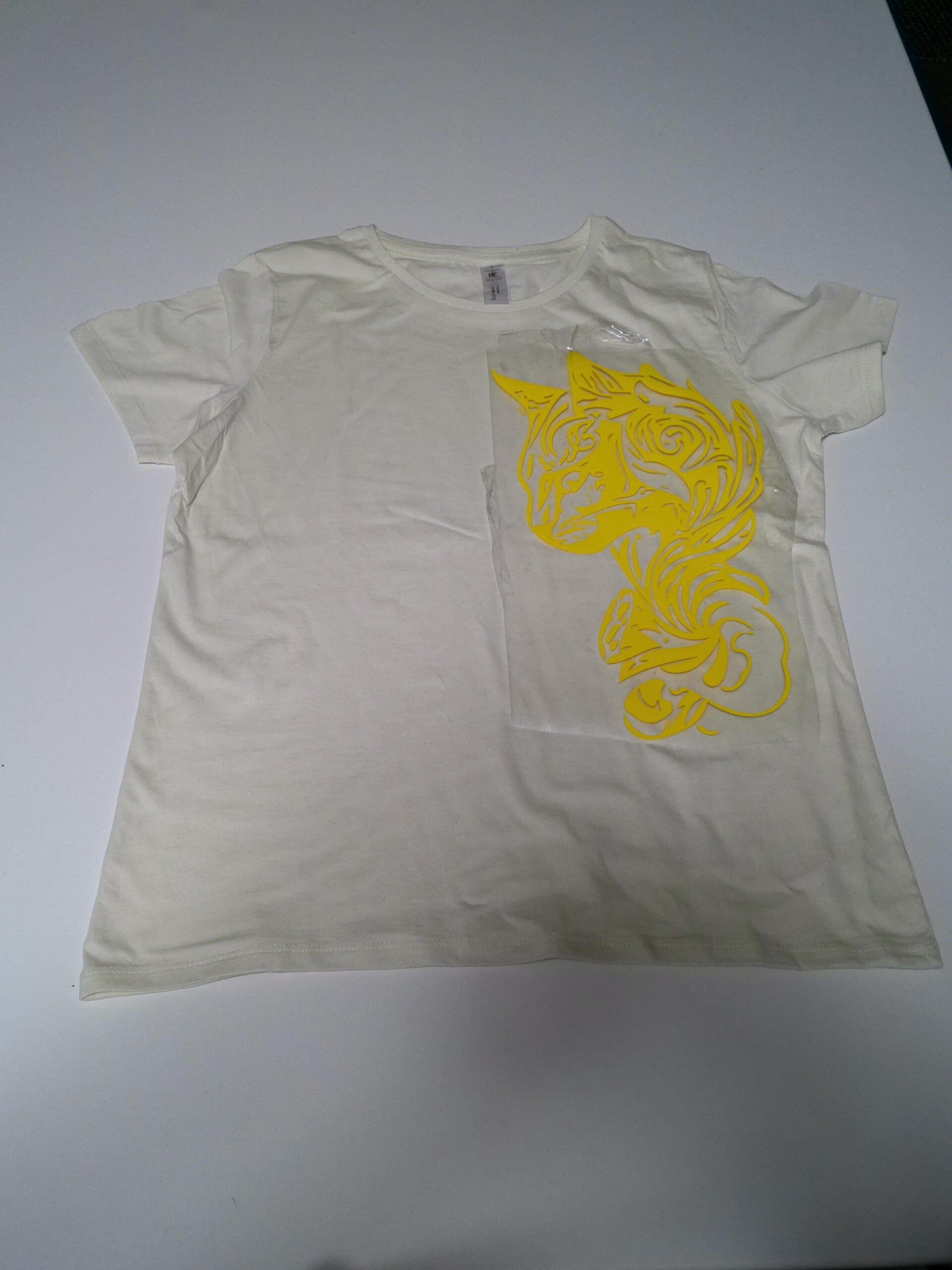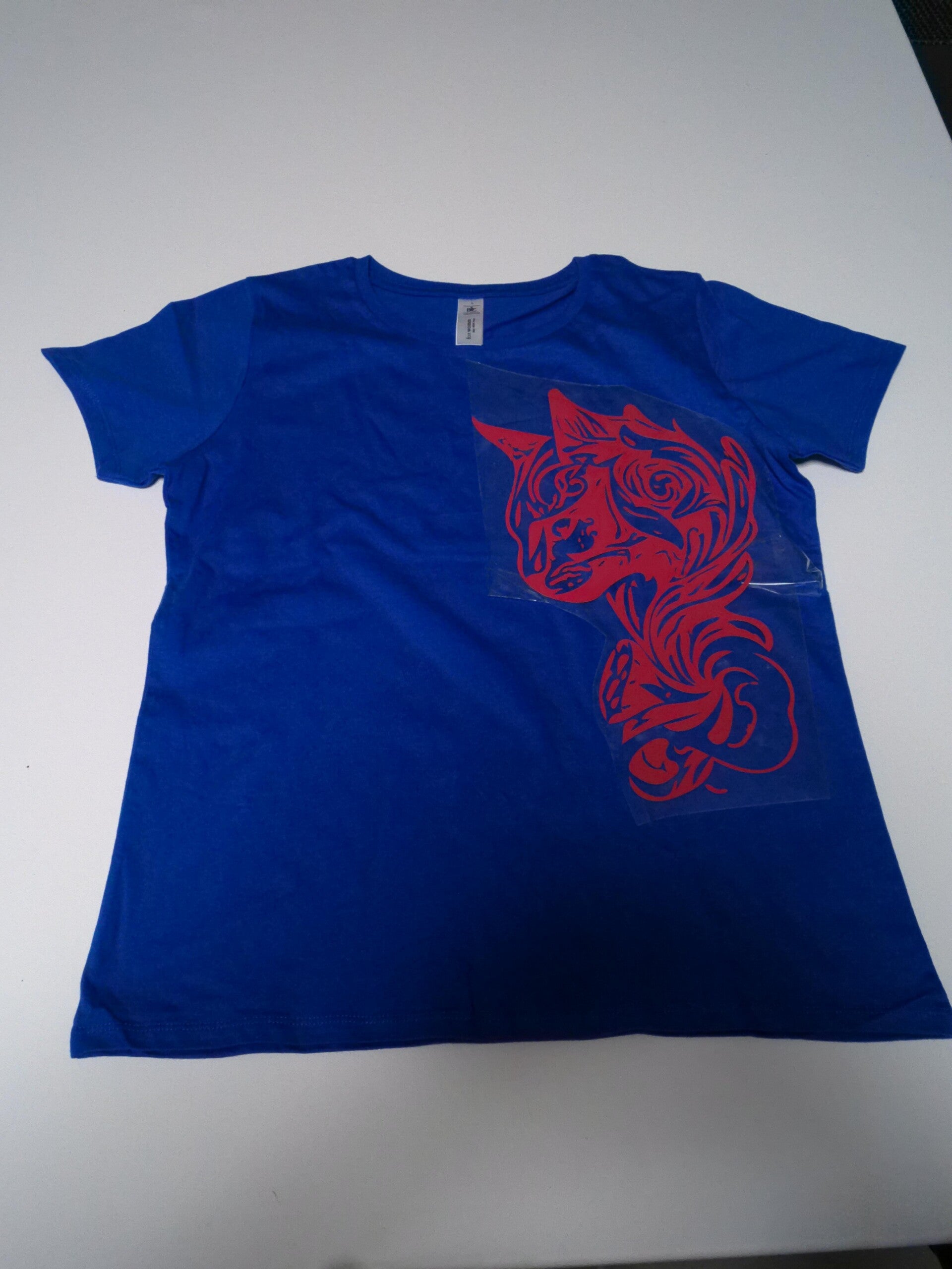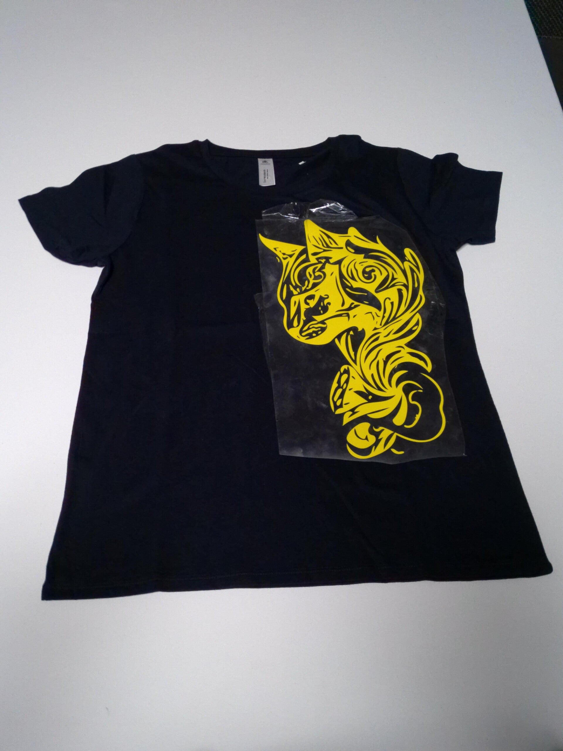 Dieser Druck wird entweder Farbig gedruckt oder Einfarbig geplottert. Und Wird dann mittels Heizpresse mit dem T-Shirt Verschmolzen.