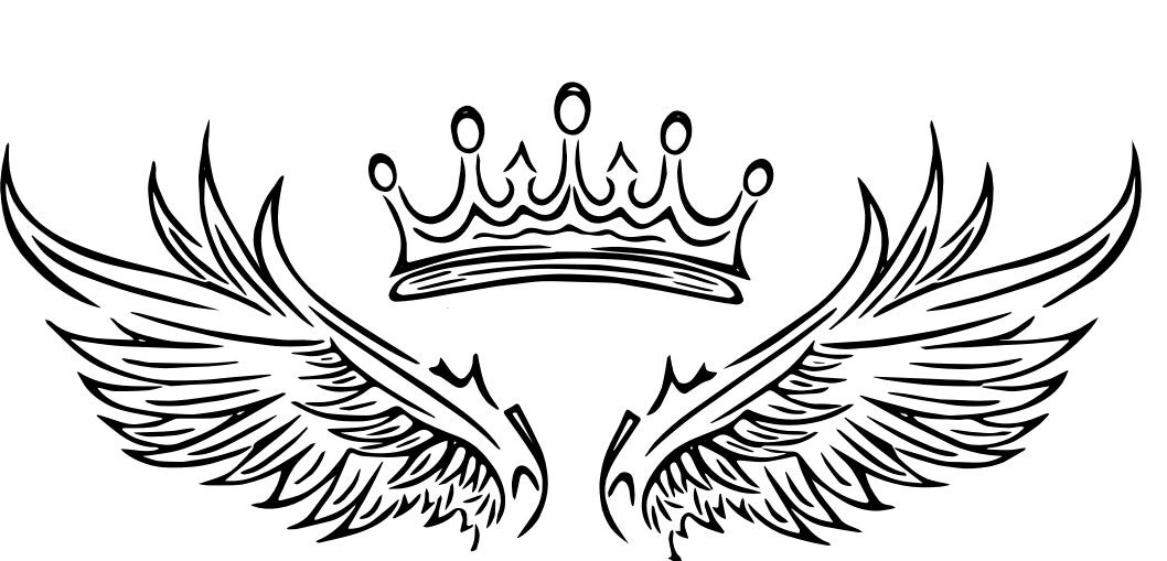 Dieses T-Shirt gibt es mit dem Aufdruck Von Engelsflügel mit Krone.