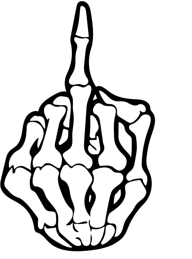 Dieses T-Shirt gibt es mit dem Aufdruck eines Skelett Stinkefinger.