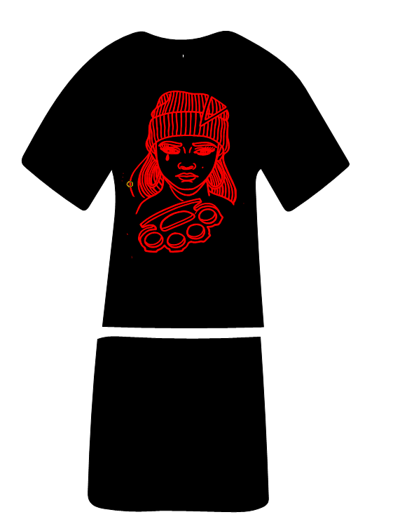 Der Aufdruck wird der Größe des Oberteils angepasst.