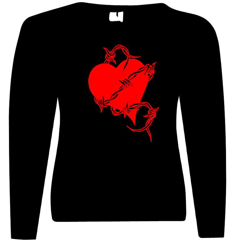Dieser Pullover/Sweatshirt gibt es mit dem Aufdruck Herz mit Draht.