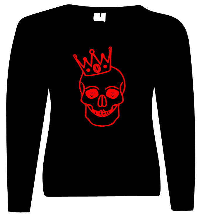 Dieser Pullover/Sweatshirt gibt es mit dem Aufdruck Totenkopf.
