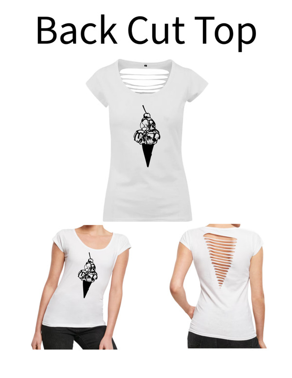 Dieses Back Cut Top wir mit einem Aufdruck verkauft. Das Motiv in diesem Fall ist ein Eis.