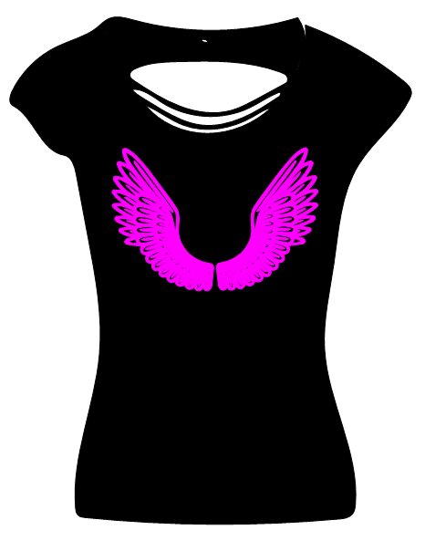 Dieses Back Cut Top wir mit einem Aufdruck verkauft. Das Motiv in diesem Fall ist ein Engelsflügel.