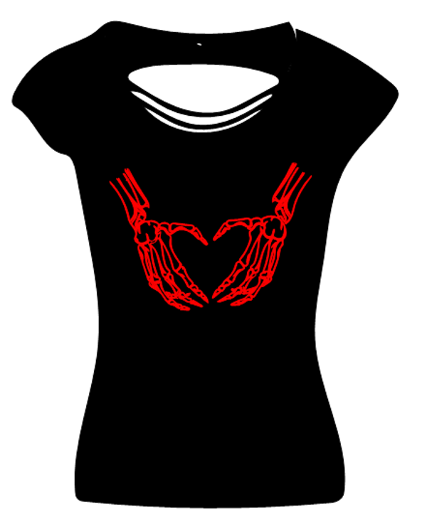 Dieses Back Cut Top wir mit einem Aufdruck verkauft. Das Motiv in diesem Fall ist eine Hand.
