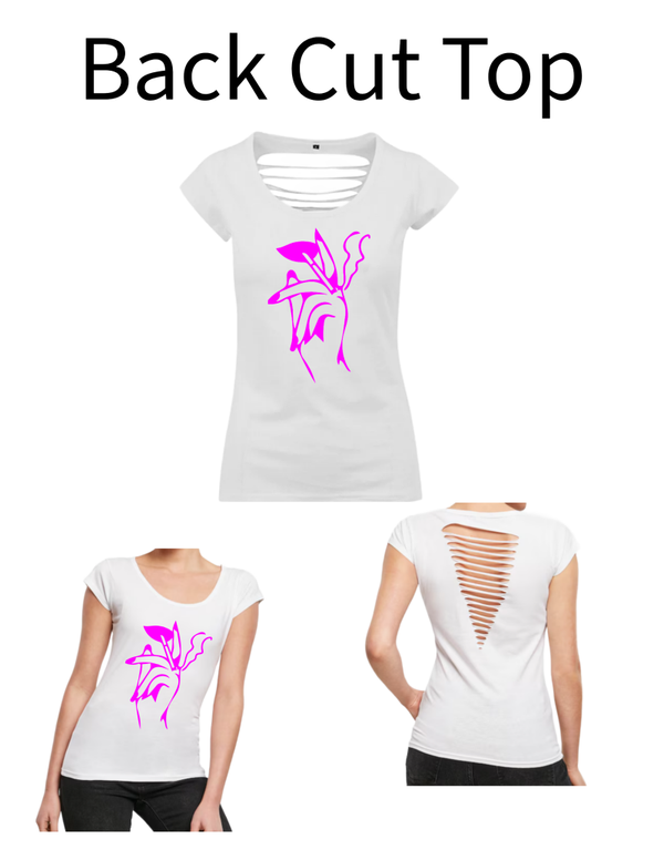 Dieses Back Cut Top wir mit einem Aufdruck verkauft. Das Motiv in diesem Fall ist eine Hand mit einer Zigarette
