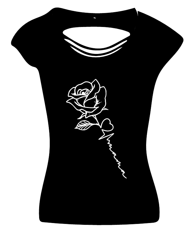 Dieses Back Cut Top wir mit einem Aufdruck verkauft. Das Motiv in diesem Fall ist eine Rose.