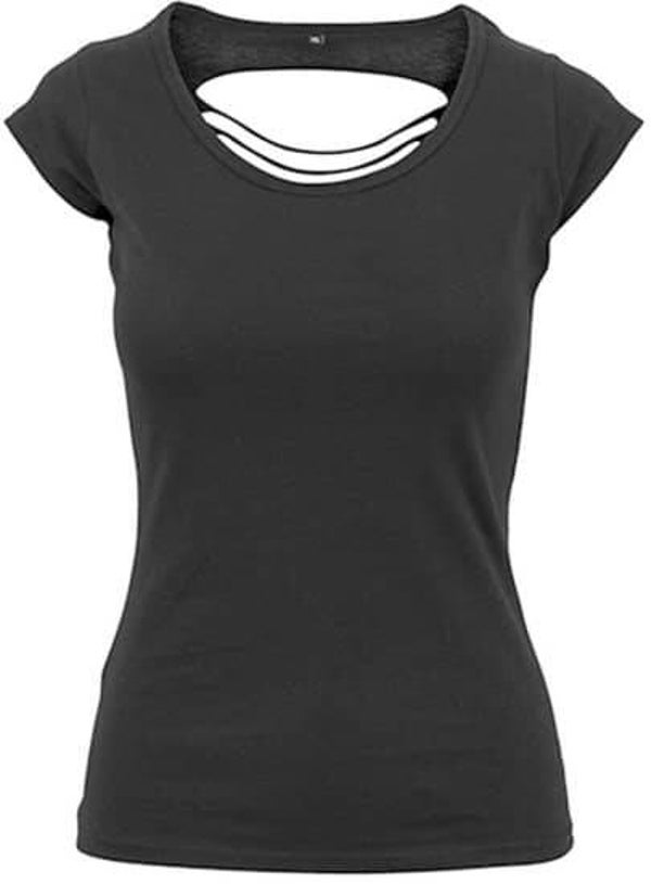 Das Back Cut Top hat einen Rundhals Ausschnitt und liegt sehr gut auf der Haut auf. Auf dem Rücken befinden sich Schlitze und man sieht ein Teil vom Rücken.