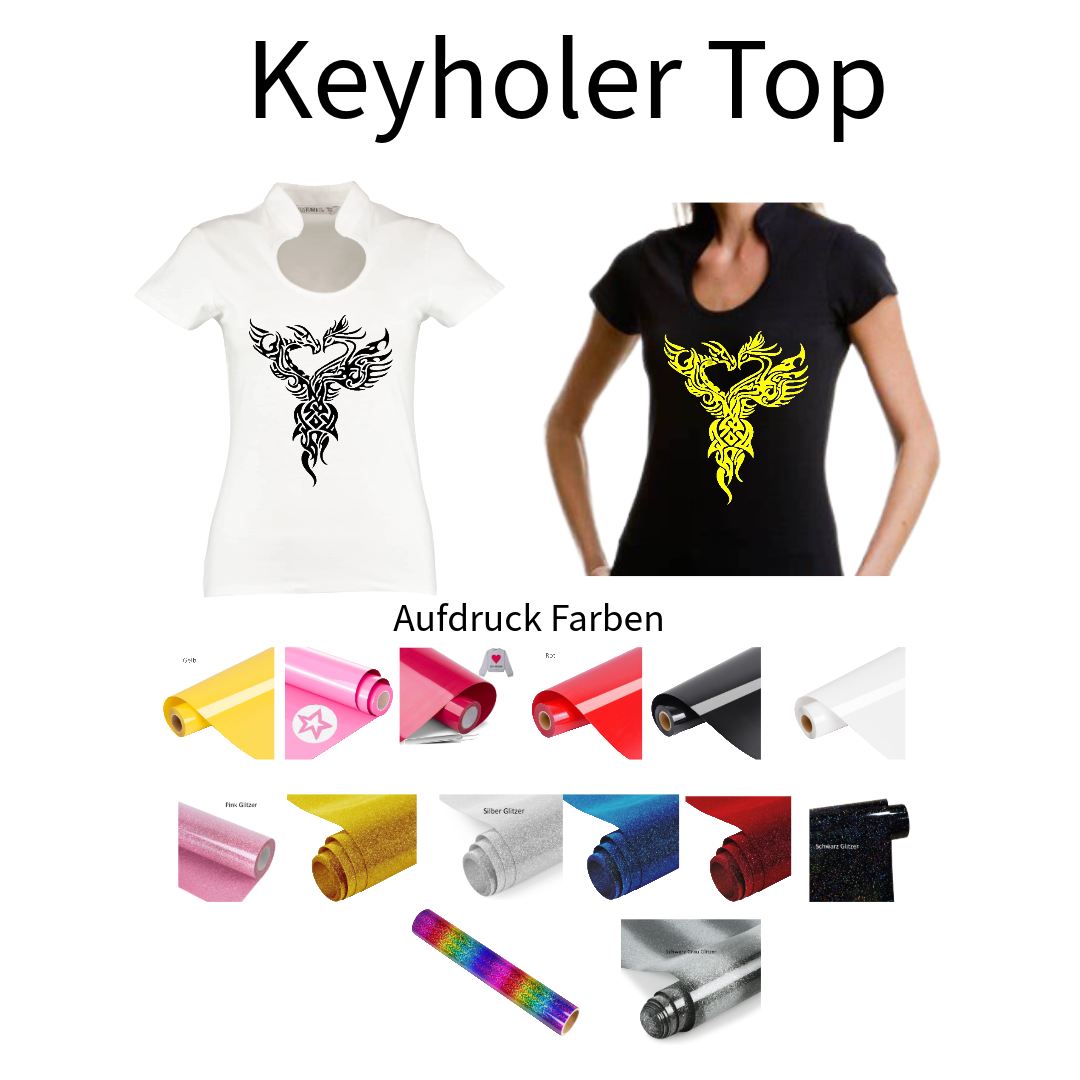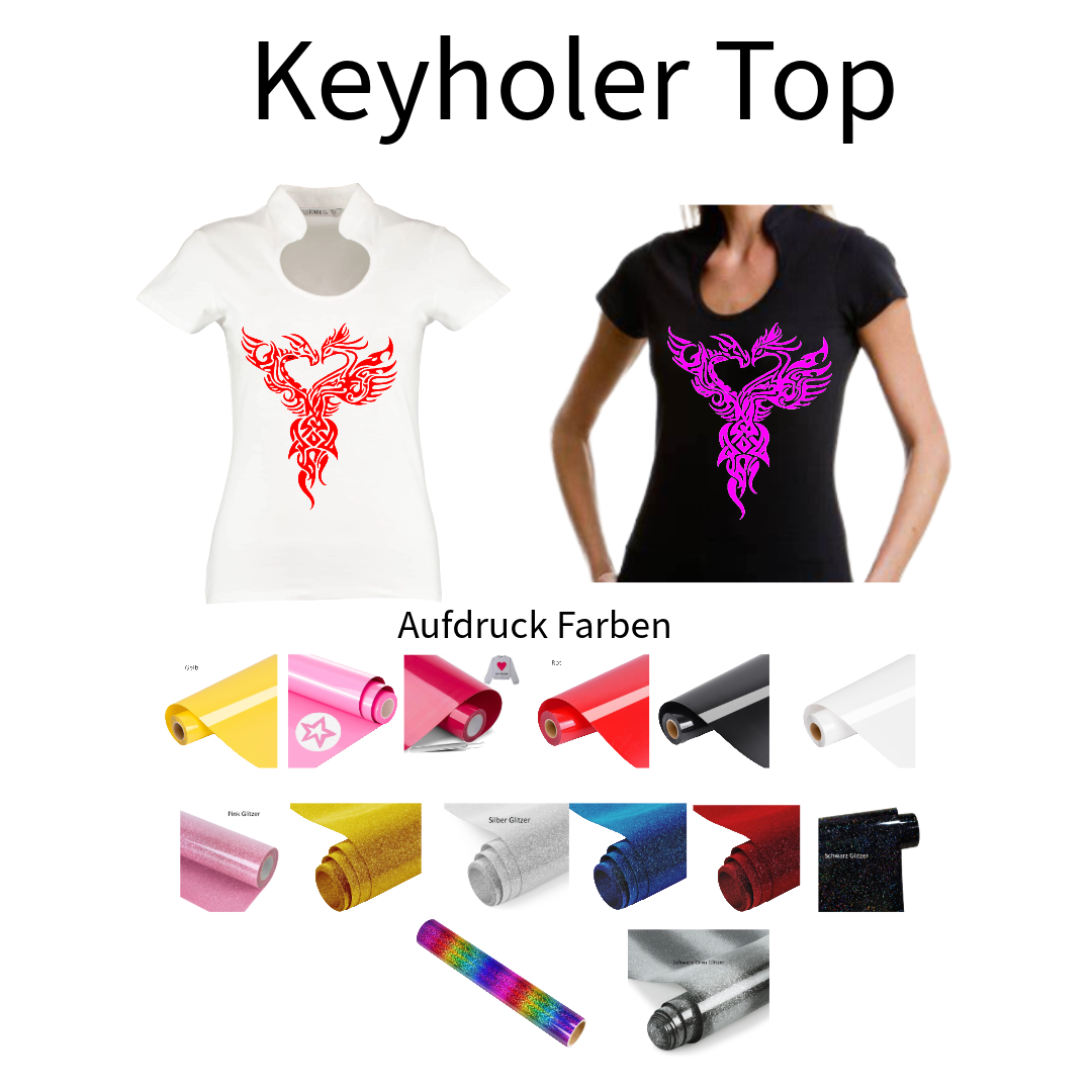 Dieses Corporate Top Keyhole wird mit einem Aufdruck verkauft. Das Motiv in diesem Fall ist ein Herz.