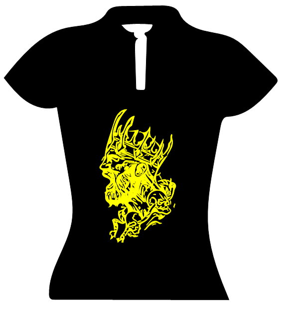 Dieses Corporate Top Keyhole wird mit einem Aufdruck verkauft. Das Motiv in diesem Fall ist ein Mann mit Krone.