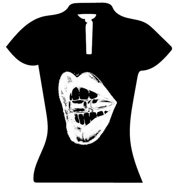 Dieses Corporate Top Keyhole wird mit einem Aufdruck verkauft. Das Motiv in diesem Fall ist ein Mund.