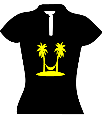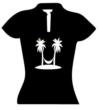 Dieses Corporate Top Keyhole wird mit einem Aufdruck verkauft. Das Motiv in diesem Fall ist ein Paradise.