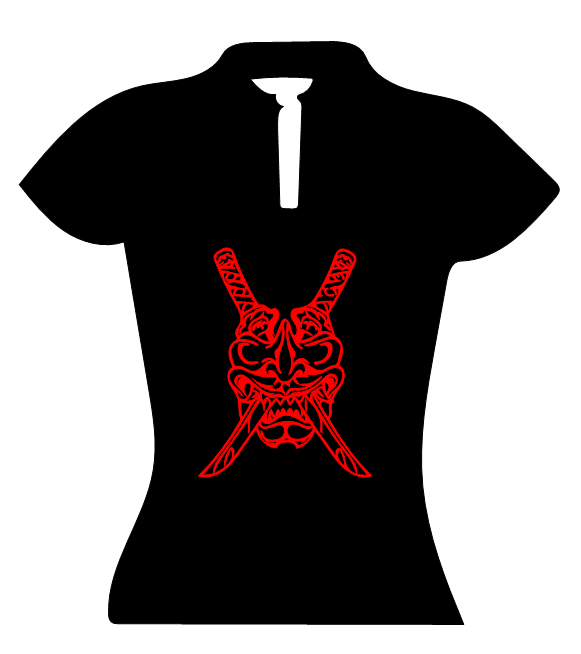 Dieses Corporate Top Keyhole wird mit einem Aufdruck verkauft. Das Motiv in diesem Fall ist ein Schwert.