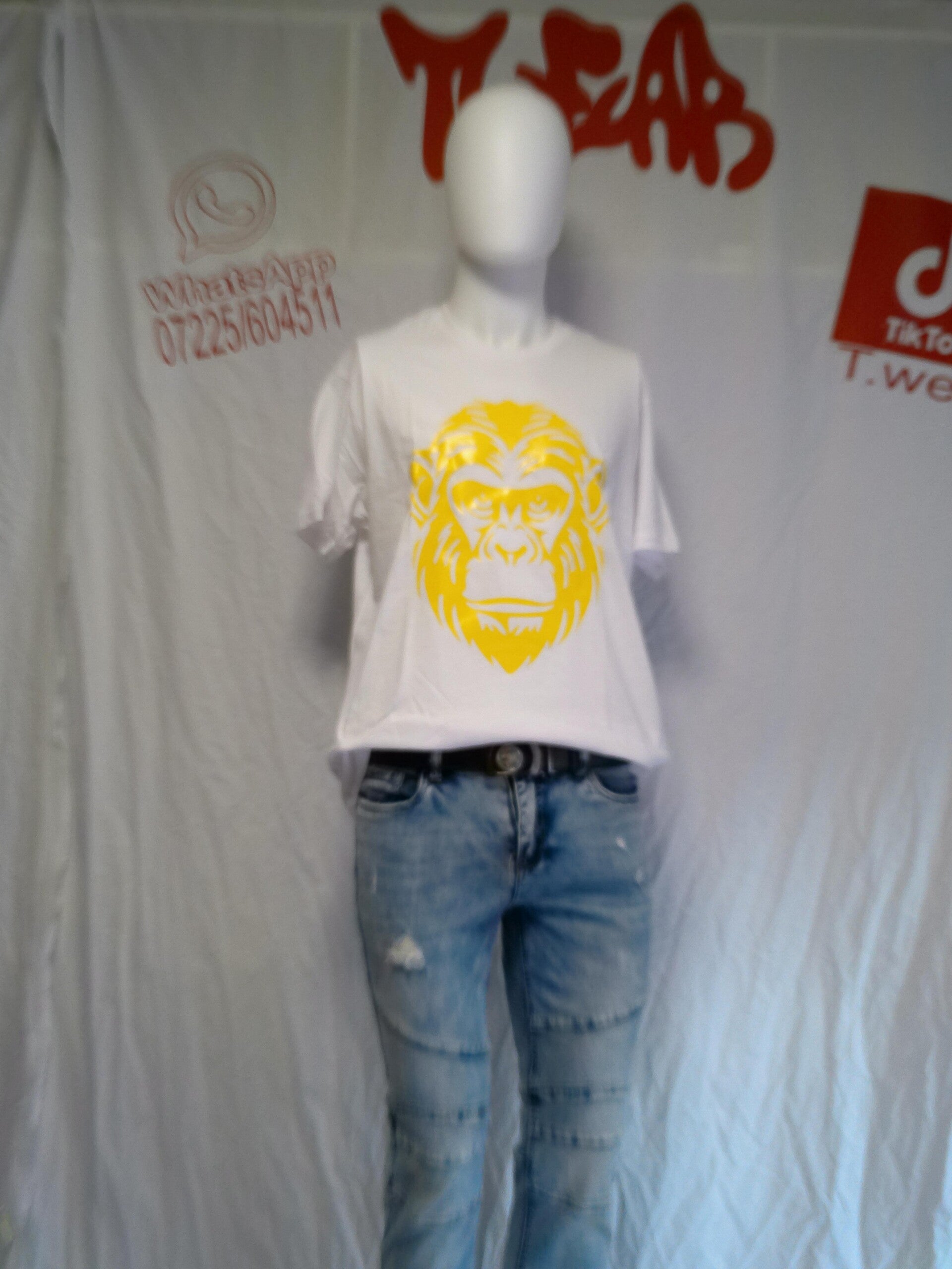 Dieses T-Shirt gibt es mit verschiedenen Aufdrucke. Die von uns selber hergestellt. Unsere Motiven auf den Kinder Tshirt hat die größe Höhe 20 cm X Breite 20 cm. Es gibt 2 Verschiedene Arten von Aufdrucken. Wir haben uns für den Folien Aufdruck gewählt. Der Aufdruck ist ein Farbig und sehr Strapazierfähig. Da der Aufdruck von einer Folie Ausgeschnitten wird, sind wir in der Lage sehr viele Folien variante anzubieten.