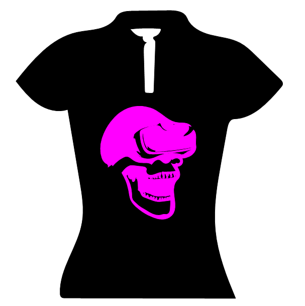 Dieses Corporate Top Keyhole wird mit einem Aufdruck verkauft. Das Motiv in diesem Fall ist ein Totenkopf.