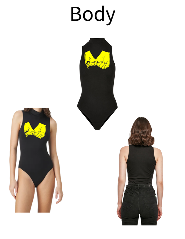 Der Aufdruck fängt an der Hüfte an und wird der jeweiligen Größe des Bodys Angepasst. Dieses Body mit denn Mustern / Motiven / Schriftzug kann dadurch getragen werden. Ab der hüfte sitzt die Hose oder der Rock und ist daher Bedeckt. Es wird zwischen den Beinen mit 3 Druckknöpfen geschlossen. Mit dem Body braucht man auch kein weiteres Oberteil. Es liegt an der Haut sehr gut an und formt das Aussehen.