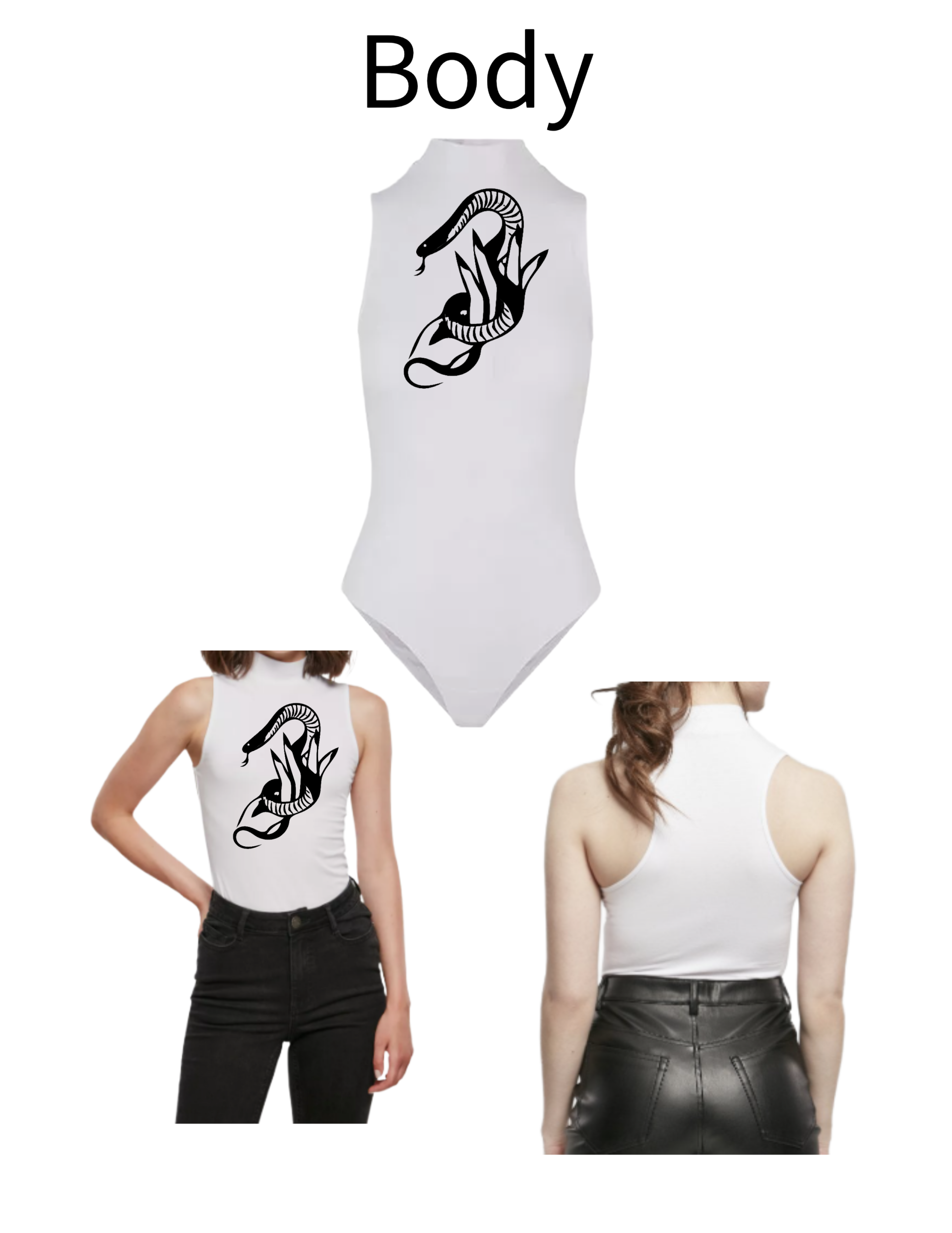 Der Aufdruck fängt an der Hüfte an und wird der jeweiligen Größe des Bodys Angepasst. Dieses Body mit denn Mustern / Motiven / Schriftzug kann dadurch getragen werden. Ab der hüfte sitzt die Hose oder der Rock und ist daher Bedeckt. Es wird zwischen den Beinen mit 3 Druckknöpfen geschlossen. Mit dem Body braucht man auch kein weiteres Oberteil. Es liegt an der Haut sehr gut an und formt das Aussehen.