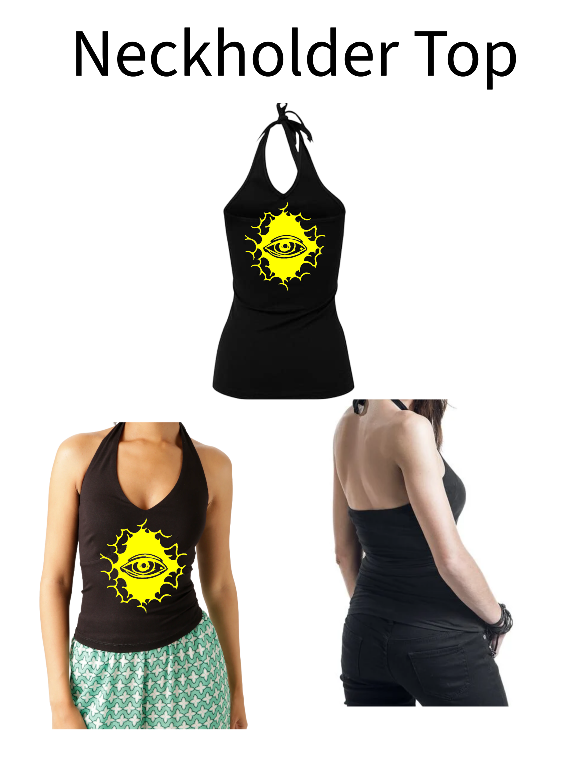 Unser Neckholder Top liegt am körper sehr gut an und wird um denn Hals gebunden. Da es um denn Halsgebunden wird, ist es wunderbar anzupassen. Der oberer Rückenbereich ist frei.