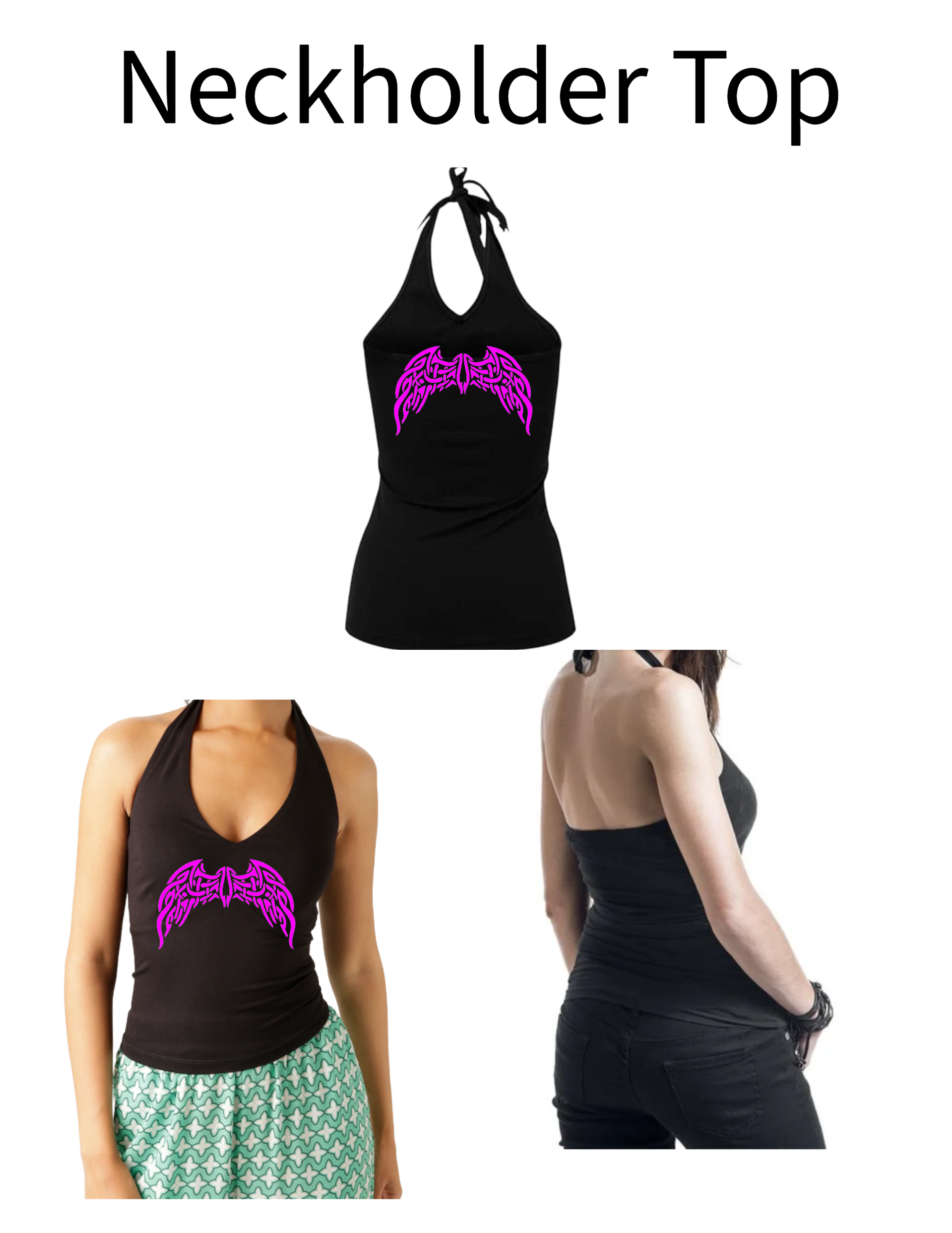 Unser Neckholder Top liegt am körper sehr gut an und wird um denn Hals gebunden. Da es um denn Halsgebunden wird, ist es wunderbar anzupassen. Der oberer Rückenbereich ist frei.