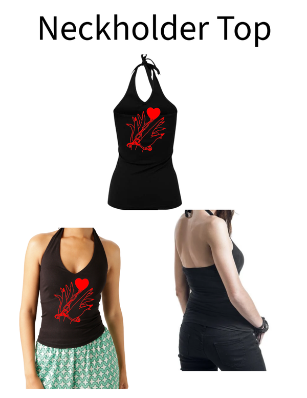 Unser Neckholder Top liegt am körper sehr gut an und wird um denn Hals gebunden. Da es um denn Halsgebunden wird, ist es wunderbar anzupassen. Der oberer Rückenbereich ist frei.
