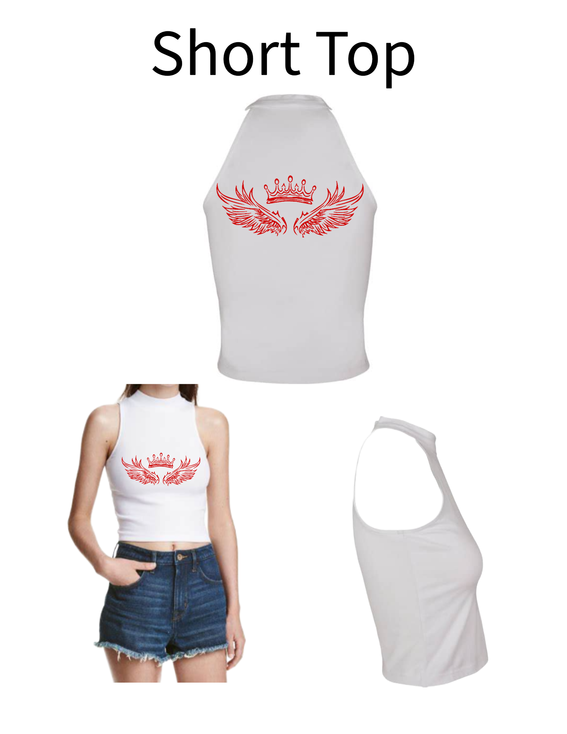 Turtleneck Short Top Engelsflügel Krone 1