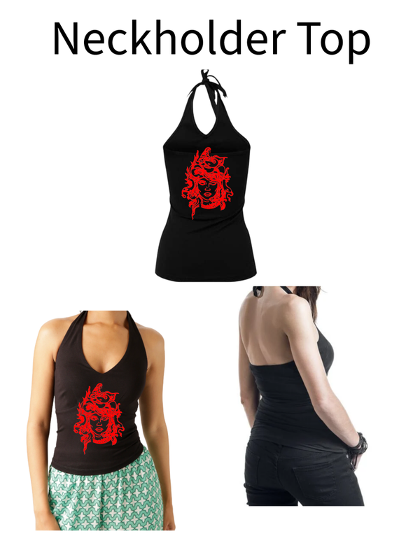 Unser Neckholder Top liegt am körper sehr gut an und wird um denn Hals gebunden. Da es um denn Halsgebunden wird, ist es wunderbar anzupassen. Der oberer Rückenbereich ist frei.
